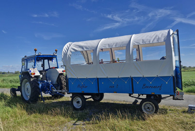 Dieter begeleidt zijn klanten ook graag zelf tijdens hun tocht. Met zijn tractor trekt hij de huifkar door het schilderachtige landschap van de Westhoek. Hij kent de regio als geen ander en stippelt routes uit langs verborgen pareltjes waar men normaal niet zou komen. Onderweg deelt hij interessante weetjes en lokale verhalen, wat de rit niet alleen vermakelijk maar ook leerzaam maakt.